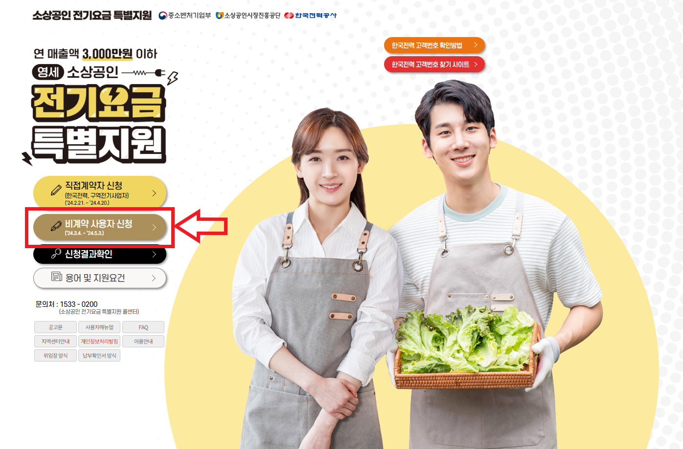한국전력과 직접 계약되지 않고 타인 명의로 계약된 전기를 사용하는 경우 비계약 사용자로서 신청하실 경우 비계약 사용자 신청을 선택하시면 됩니다. 아래 유의사항을 자세히 검토하시고 좋은 혜택을 꼭 받으시길 바랍니다.