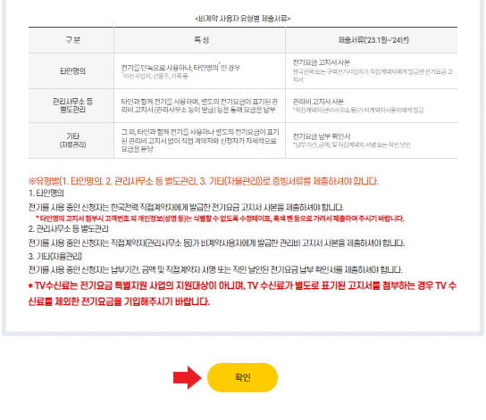 2. 타인과 함께 전기를 사용하며, 별도의 전기요금이 표기된 관리비 고지서(관리사무소 등이 발급) 등을 통해 요금을 납부하는 경우