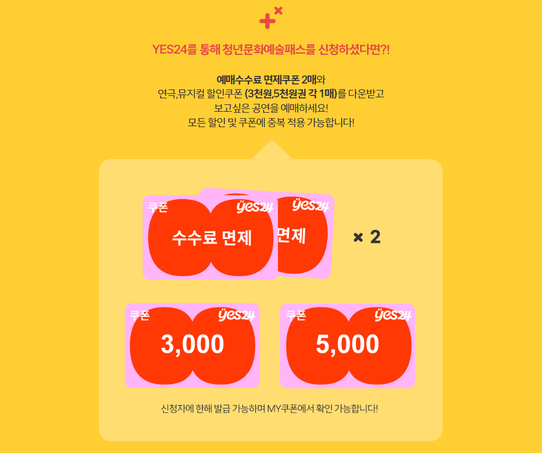 ▣ 인터파크 청년문화예술패스를 신청하시면 2,000원 할인 쿠폰을 2만 명 지급한다고 하네요.